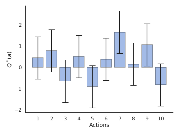 We note V^*(s) and Q^*(s, a) the optimal value of the different states and actions under \pi^*.
