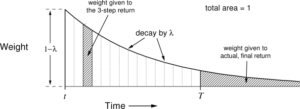Large n-step returns (MC) should not have as much importance as small ones (TD), as they have a high variance.