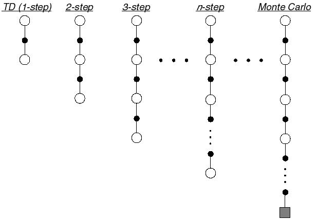 V(s_t) \leftarrow V(s_t) + \alpha \, (R^n_t - V (s_t))