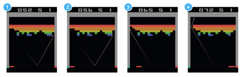 Using video frames as states breaks the Markov property: the speed and direction of the ball is a very relevant information for the task, but not contained in a single frame.