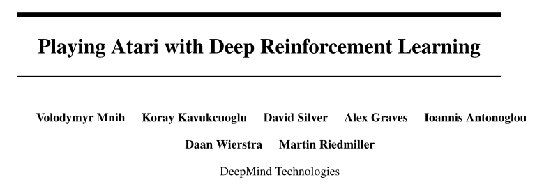 Mnih et al. (2013) Playing Atari with Deep Reinforcement Learning. http://arxiv.org/abs/1312.5602