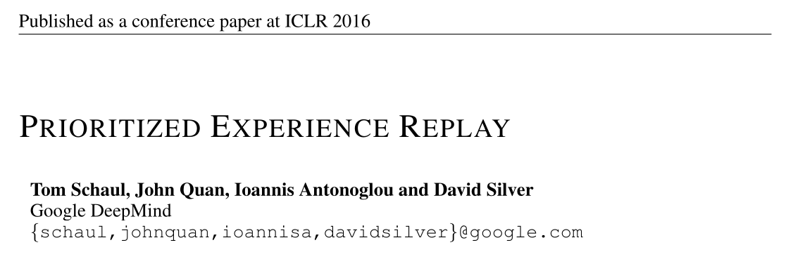 Schaul et al. (2015) Prioritized Experience Replay. arXiv:1511.05952