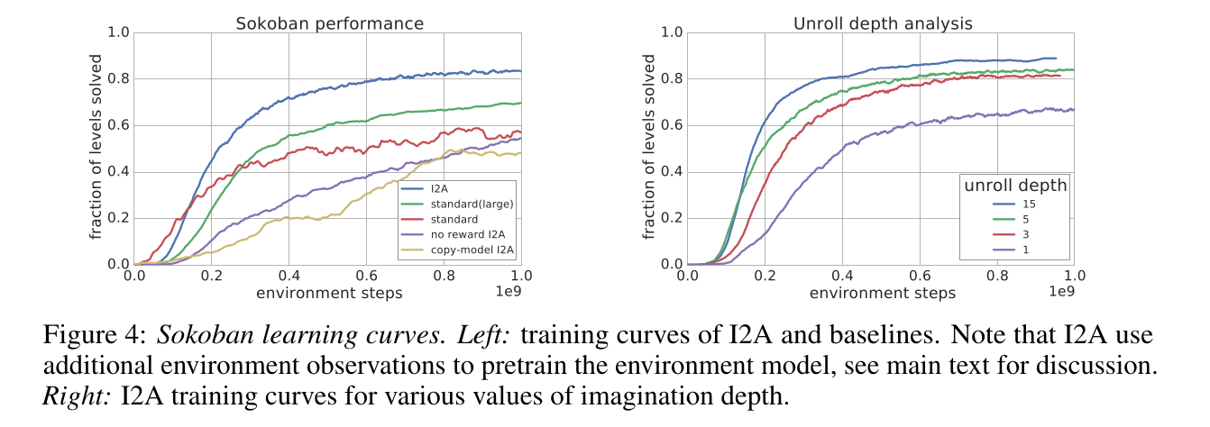 Unsurprisingly, I2A performs better than A3C on Sokoban.
