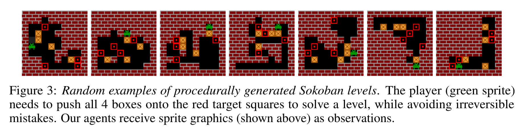 They showcase their algorithm on the puzzle environment Sokoban, where you need to move boxes to specified locations.