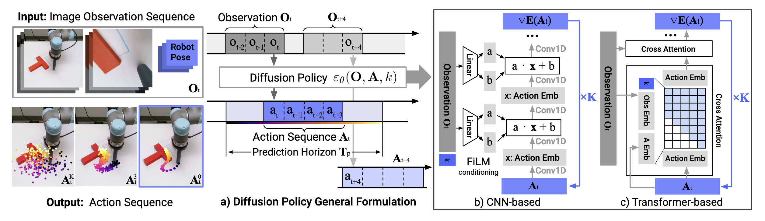 Chi et al. (2024) Diffusion Policy: Visuomotor Policy Learning via Action Diffusion. arXiv:2303.04137