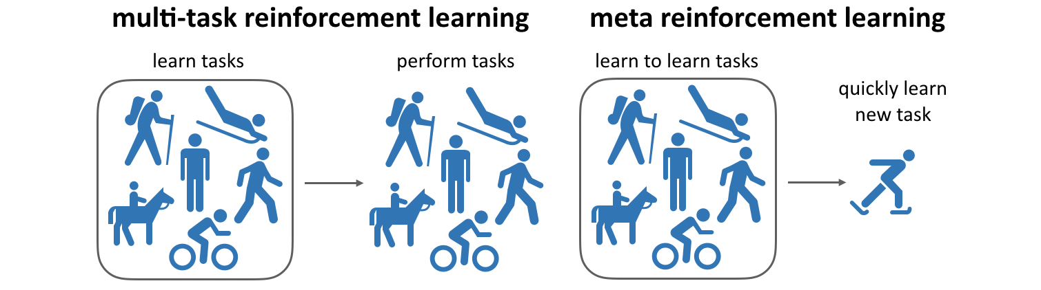 Meta RL: Wang JX, Kurth-Nelson Z, Tirumala D, Soyer H, Leibo JZ, Munos R, Blundell C, Kumaran D, Botvinick M. (2016). Learning to reinforcement learn. arXiv:161105763.