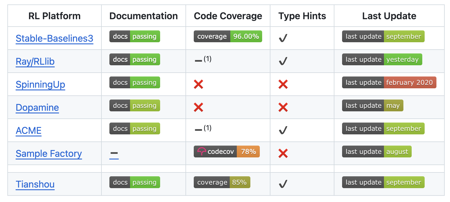 tianshou is a recent addition to the family. The implementation is based on pytorch and is very modular. Allows for efficient distributed RL.Algos: DQN+/DDPG/PPO/SAC, imitation learning, offline RL…